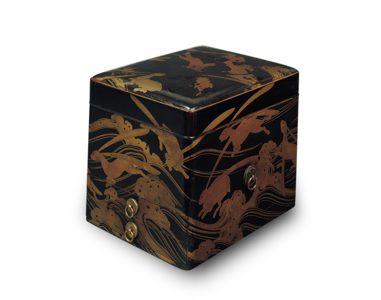 漆器の表面に先ず漆で絵や文様などを描き、それが乾かないうちに金や銀などの金属粉を「蒔く」ことで器面に定着させる技法です。